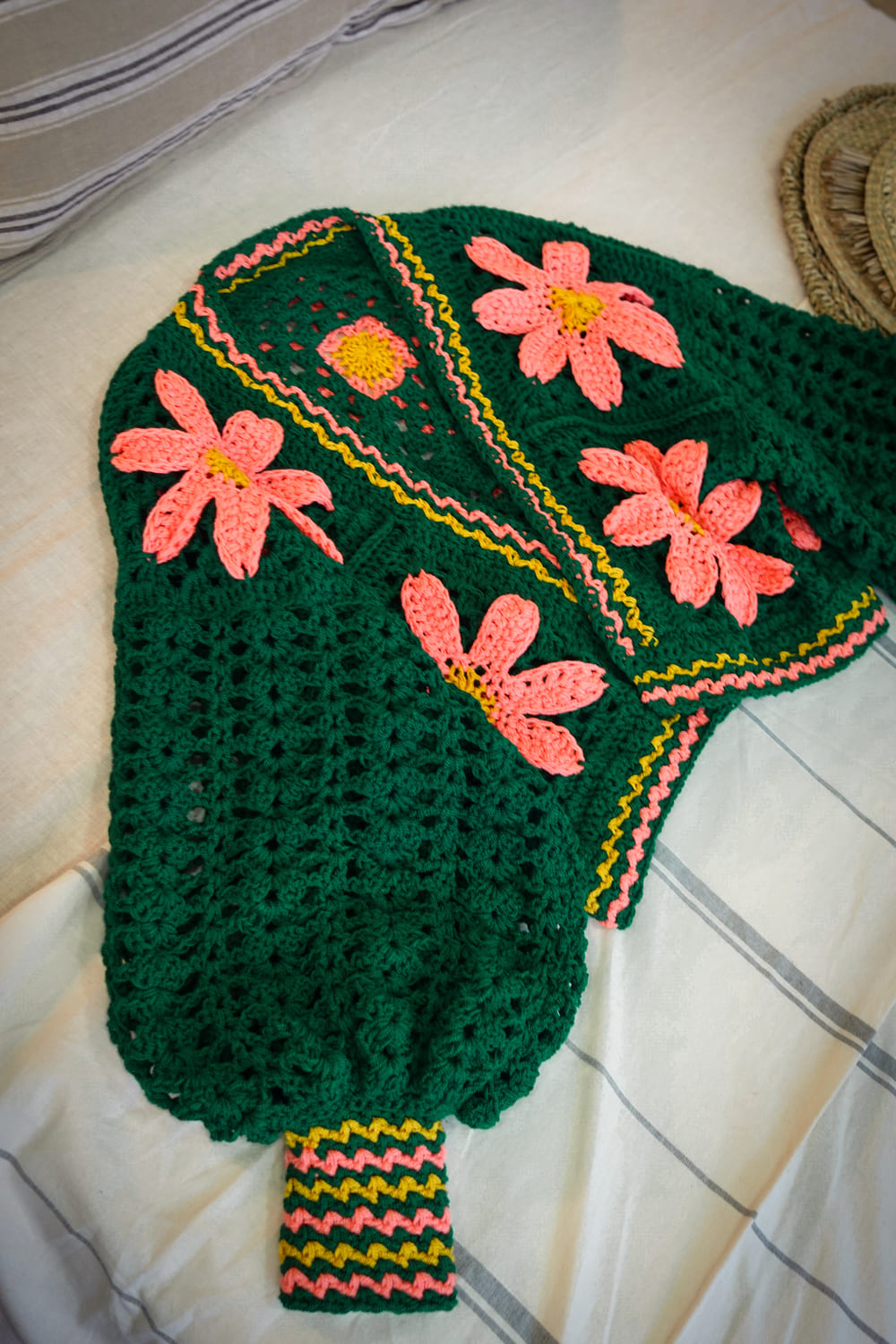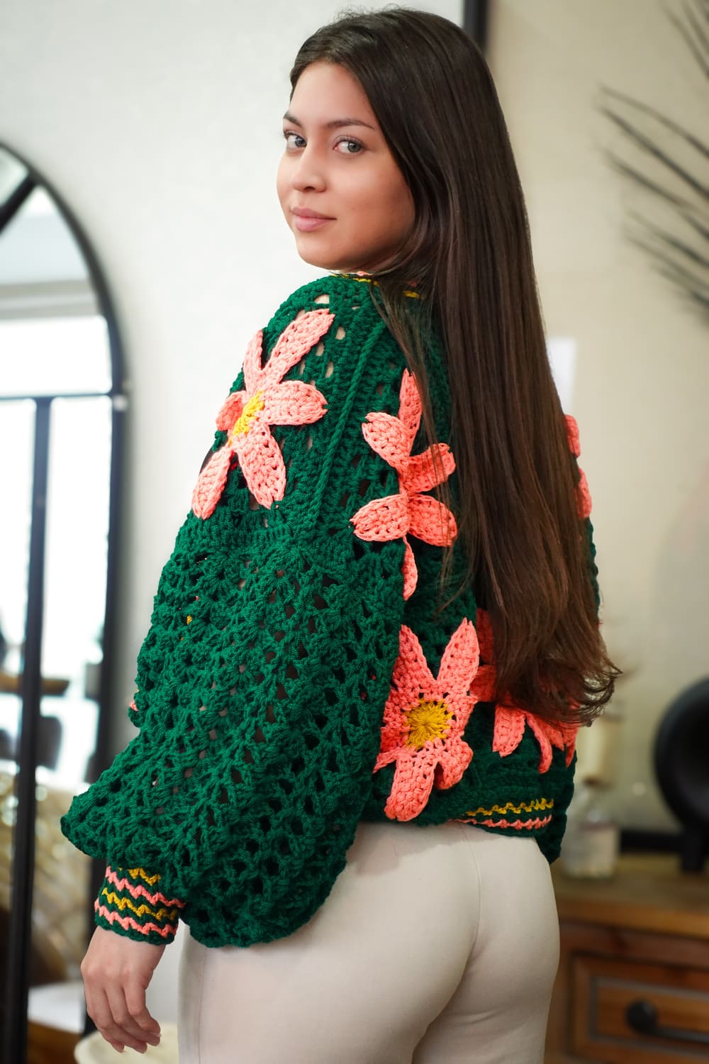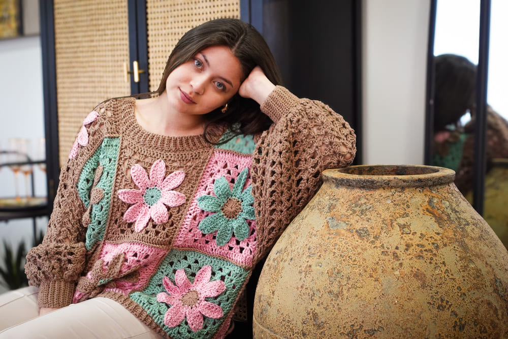 - Guía PDF donde encontrarás la lista de materiales, muestra de tensión, cantidad de hilado para talla aproximada y medidas que debes tomar para tejerla del largo y ancho que quieras.